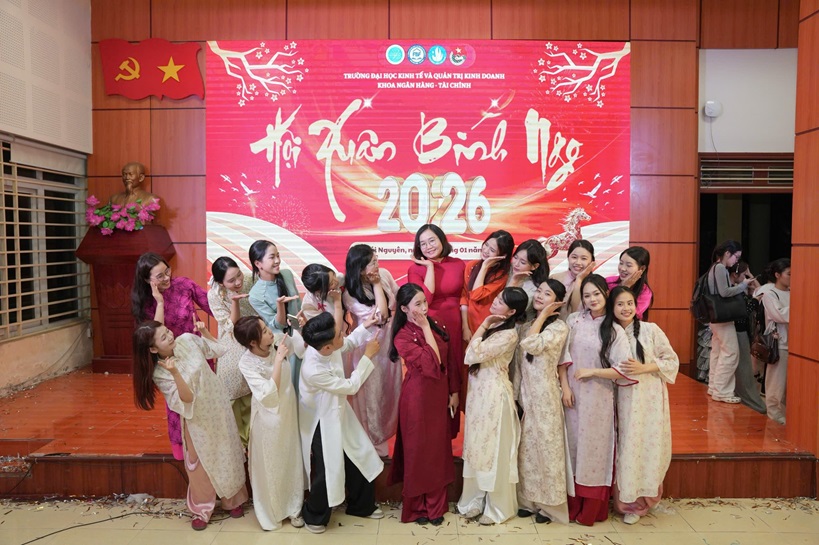 Hội Xuân Bính Ngọ 2026 của Khoa Ngân hàng – Tài chính đã diễn ra thành công tốt đẹp, để lại nhiều dấu ấn sâu sắc và cảm xúc trọn vẹn trong lòng giảng viên, sinh viên toàn Khoa. Chương trình là dịp để cùng nhìn lại những thành quả đã đạt được trong năm qua, đồng thời gửi trao những lời chúc tốt đẹp cho một năm mới an khang – thịnh vượng – thành công.