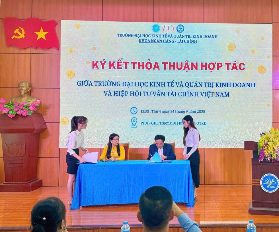 Lễ ký kết đã diễn ra trong không khí trang trọng, khẳng định tinh thần đồng hành, gắn kết và cùng phát triển giữa Trường Đại học Kinh tế và Quản trị kinh doanh và Hiệp hội Tư vấn tài chính Việt Nam