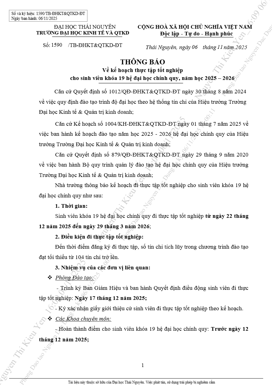 + Thông báo Về việc kế hoạch xét tốt nghiệp Đợt 3 - Năm 2025 - hệ đại học chính quy